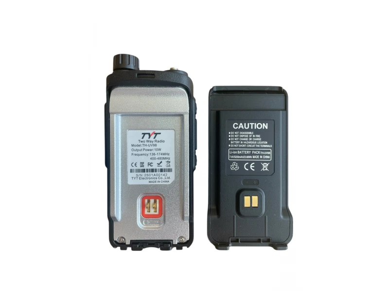 Ραδιοφωνικός Σταθμός TYT TH-UV98 10W - Επαγγελματική Επικοινωνία Διπλής Ζώνης 📡 Ο ραδιοφωνικός σταθμός TYT TH-UV98 προσφέρει ισχύ 10W , διπλή αναμονή και πλούσια χαρακτηριστικά για επαγγελματική χρήση σε δίκτυα ασφαλείας, κατασκευών και ερασιτεχνών. Κύρια χαρακτηριστικά ⚙️ ✔️ Ισχύς εξόδου 10W για μεγαλύτερη εμβέλεια ✔️ Μεγάλη οθόνη LCD dot-matrix με υψηλή αναγνωσιμότητα ✔️ Διπλή ζώνη (VHF/UHF), διπλή αναμονή και διπλή αναμονή ✔️ 200 αποθηκευμένα κανάλια με κωδικοποίηση CTCSS/DCS Έξυπνες λειτουργίες 🤖 ✔️ Κωδικοποίηση και αποκωδικοποίηση DTMF ✔️ Κωδικοποιητής για ασφαλή επικοινωνία ✔️ Σήματα 2 τόνων και 5 τόνων, τόνος 1750 Hz ✔️ Λειτουργία πολλαπλών οθονών και κλείδωμα πλήκτρων ✔️ Εξοικονόμηση μπαταρίας με λειτουργία VOX και αυτόματο κλείσιμο Διαχείριση και ασφάλεια 🔐 ✔️ Απομακρυσμένη "αναισθητοποίηση"/σκότωση/ενεργοποίηση της συσκευής ✔️ Μενού στα Βουλγαρικά και σε πολλές άλλες γλώσσες ✔️ Επαναφορτιζόμενη μπαταρία ιόντων λιθίου 3200 mAh για μεγάλη αυτονομία Τι θα βρείτε στο κιτ 📦 2 τεμ. Ραδιοφωνικός σταθμός TYT TH-UV98 2 τεμάχια μπαταρία 3200 mAh 2 τεμάχια τροφοδοτικό και καλώδιο 2 τεμάχια κεραία και κλιπ ζώνης 2 τεμάχια εγχειρίδιο χρήστη