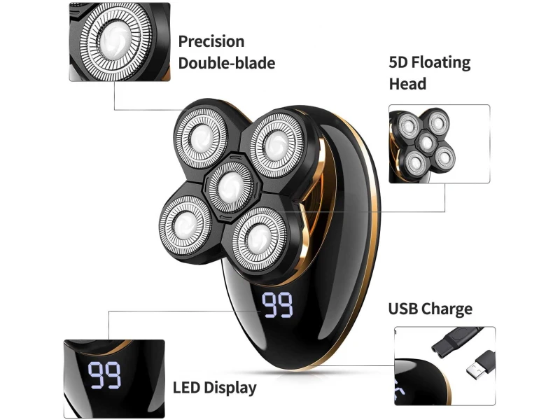 Το σετ ξυριστικής μηχανής μπαταρίας VGR V-316 5 σε 1 είναι ειδικά σχεδιασμένο για άντρες που θέλουν πάντα να δείχνουν όμορφα. Η ξυριστική μηχανή διαθέτει κεφαλή κοπής με 5 περιστρεφόμενες λεπίδες, χρησιμοποιώντας το σύστημα ξυρίσματος 5 D , που ταιριάζει απόλυτα στο περίγραμμα του προσώπου. Η κουρευτική μηχανή διαθέτει επίσης σύστημα κατά του τσιμπήματος. Στο μέσο της μπροστινής πλευράς της θήκης κουρευτικής μηχανής υπάρχει μια οθόνη LCD που δείχνει τη χωρητικότητα της μπαταρίας. Η συσκευή είναι εξοπλισμένη με μπαταρία που φορτίζει πλήρως σε περίπου 2 ώρες και προσφέρει χρήση για περίπου 50 λεπτά. Συνιστάται να μην φορτίζετε για περισσότερες από 2 ώρες, καθώς αυτό μπορεί να επηρεάσει τη διάρκεια ζωής της μπαταρίας. Η ξυριστική μηχανή φορτίζεται χρησιμοποιώντας το καλώδιο USB που περιλαμβάνεται. Έχει καθαρό και κομψό σχεδιασμό και προσκαλεί ακριβείς εργασίες διαμόρφωσης γενειάδας.