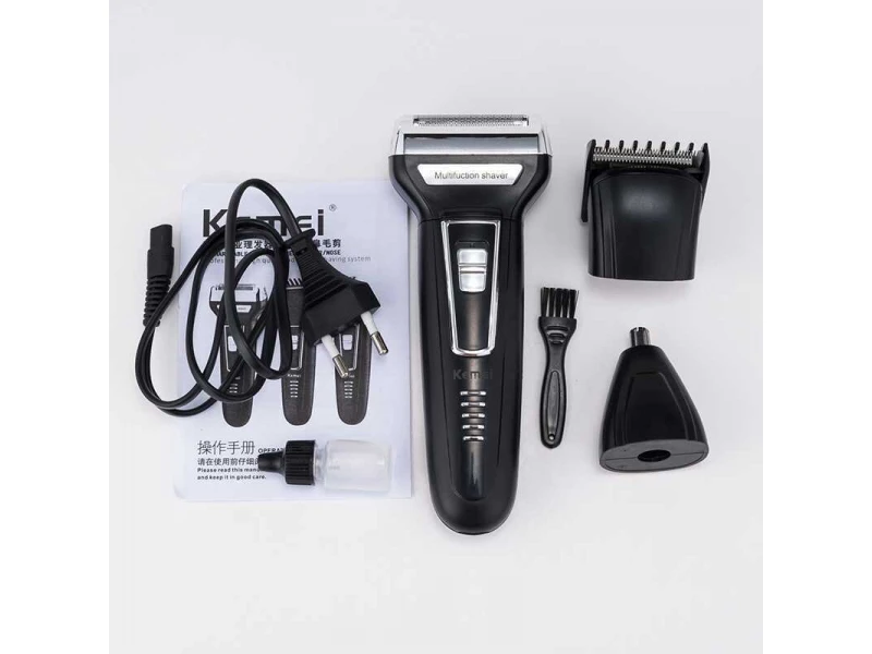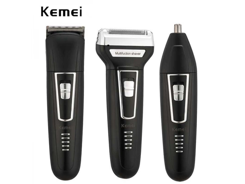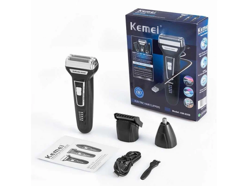 Σας παρουσιάζουμε την ανδρική ξυριστική μηχανή και κουρευτική μηχανή Kemei KM-6558, η οποία διαθέτει 3 εξαρτήματα – ξύρισμα, κούρεμα και καθαρισμό μαλλιών από τη μύτη και τα αυτιά.