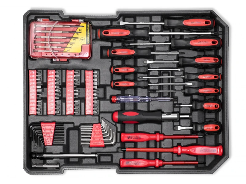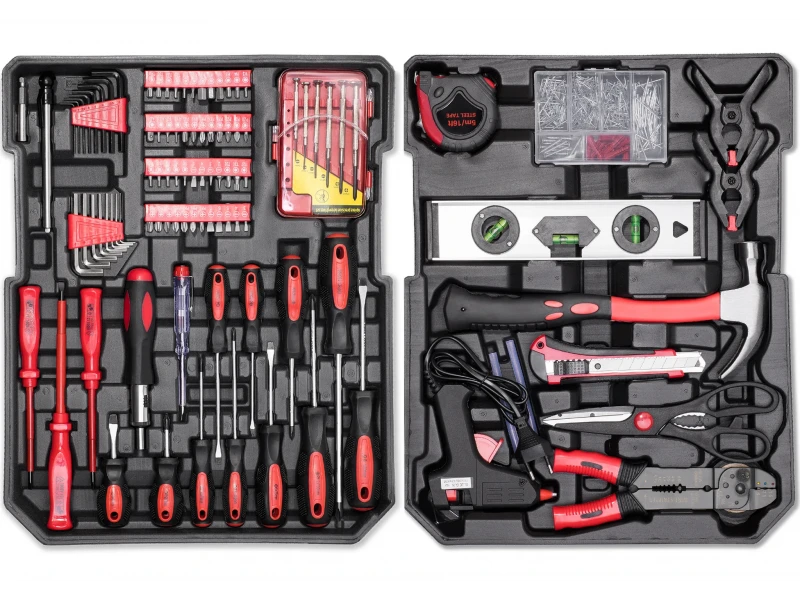Θήκη εργαλείων KraftRoyal - 499 τεμάχια Αυτό το σετ εργαλείων χειρός από την KraftRoyal περιλαμβάνει όλα όσα χρειάζεστε για επαγγελματικές και ερασιτεχνικές εργασίες. Συσκευασμένο σε μια βολική βαλίτσα με ρόδες , το σετ είναι εύκολο στη μεταφορά και αποθήκευση και τα εργαλεία είναι τοποθετημένα σε ειδικά προφίλ κουτιά για εύκολη πρόσβαση και οργάνωση. Χαρακτηριστικά του σετ: Σύνολο ανταλλακτικών: 499 Βάρος: 13,5 kg Βαλίτσα με ρόδες για εύκολη μεταφορά Εργονομικές λαβές για άνεση και ασφάλεια κατά την εργασία Προφίλ κουτιά «δίσκων» για αποτελεσματική αποθήκευση και τοποθέτηση εργαλείων Περιεχόμενο εργαλείου: Πρώτος δίσκος: Υποδοχές 1/2” : 10, 11, 12, 13, 14, 15, 16, 17, 18, 19, 20, 21, 22, 24 χλστ. Υποδοχές 1/4" : 4, 4,5, 5, 5,5, 6, 7, 8, 9, 10, 11, 12, 13 mm 2 τεμάχια Καστάνια Κοντό και μακρύ καλώδιο επέκτασης Κάρντεν αρμοί : 2 τεμάχια Υποδοχές μπουζί: 16, 21 mm 2 κομμάτια Vrtok Δεύτερος δίσκος: Συνδυαστικά κλειδιά : 8, 9, 10, 11, 12, 13, 14, 15, 17, 19 mm Πένσα, πλαϊνοί κόφτες : 180 χλστ Ρυθμιζόμενο κλειδί : 8” Πένσα τηλεφώνου : 160 χλστ Πένσα τύπου “Garga” : 200 χλστ Πένσα συνδυασμού : 10” Τρίτος δίσκος: Πένσα λαβής : 175 χλστ Πένσα πτύχωσης : 200 mm 2 τεμάχια σφιγκτήρες Ρολό Πιστόλι θερμής κόλλας 2 τεμάχια ξυλάκια σιλικόνης Σφυρί Επίπεδο Μοντέλο μαχαίρι Δεσμοί καλωδίων κοτσιδάκι Κουτί με κουμπώματα Τέταρτος δίσκος: Κατσαβίδια ακριβείας : 6 τεμάχια Κανονικά κατσαβίδια : 15 τεμάχια Φασόμετρο Bits : 24 τεμ. Καστάνια κατσαβίδι Καλώδιο επέκτασης Μύτη γάντζου σε σχήμα Υ Φόντα: Όλα τα εργαλεία διαθέτουν εργονομικές λαβές , που εξασφαλίζουν άνεση και ασφάλεια κατά την εργασία. Βολική βαλίτσα με ρόδες για εύκολη μεταφορά. Άριστη οργάνωση και διάταξη οργάνων σε ειδικούς δίσκους. Μεγάλη γκάμα εργαλείων κατάλληλα για διάφορες εφαρμογές στον τομέα της αυτοκινητοβιομηχανίας, του σπιτιού και των επαγγελματικών. Ιδανικό για: Επαγγελματίες τεχνικοί Λάτρεις της οικιακής βελτίωσης Μηχανολόγοι, οικοδόμοι, ηλεκτρολόγοι και άλλοι επαγγελματίες Με αυτό το κιτ έχετε όλα όσα χρειάζεστε για οποιαδήποτε επισκευή και συντήρηση!