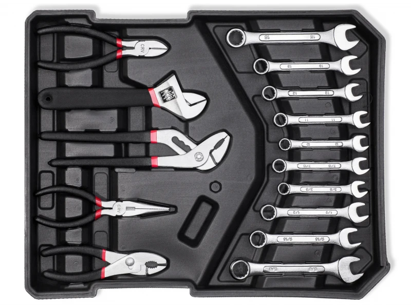 Αυτό το σετ εργαλείων χειρός από την KraftRoyal περιλαμβάνει όλα όσα χρειάζεστε για επαγγελματικές και ερασιτεχνικές εργασίες. Συσκευασμένο σε μια βολική βαλίτσα με ρόδες, το σετ είναι εύκολο στη μεταφορά και αποθήκευση και τα εργαλεία είναι τοποθετημένα σε ειδικά προφίλ κουτιά για εύκολη πρόσβαση και οργάνωση.