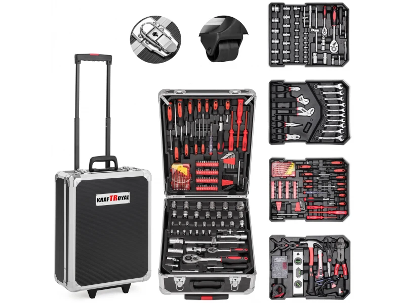 Αυτό το σετ εργαλείων χειρός από την KraftRoyal περιλαμβάνει όλα όσα χρειάζεστε για επαγγελματικές και ερασιτεχνικές εργασίες. Συσκευασμένο σε μια βολική βαλίτσα με ρόδες , το σετ είναι εύκολο στη μεταφορά και αποθήκευση και τα εργαλεία είναι τοποθετημένα σε ειδικά προφίλ κουτιά για εύκολη πρόσβαση και οργάνωση.
