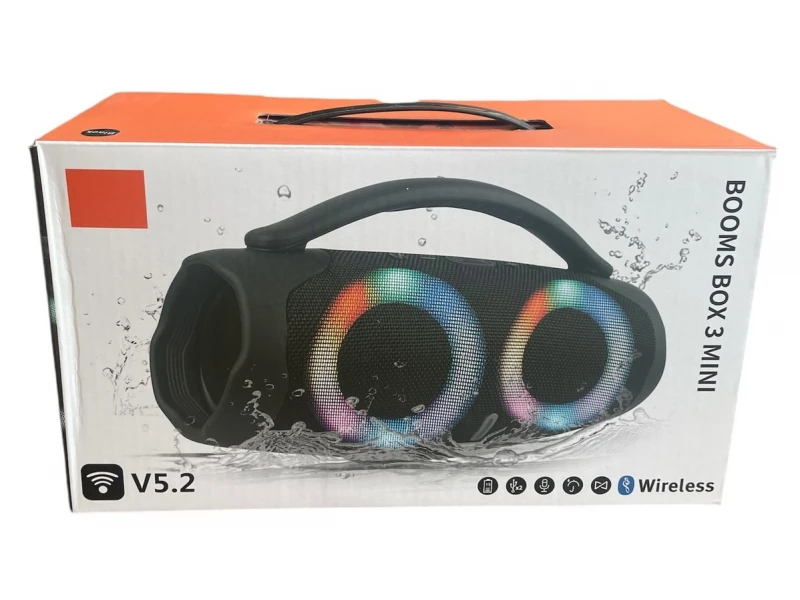 Αδιάβροχο Ισχυρό Ασύρματο Bluetooth Ηχείο Booms Box 3 Mini RGB - Μαύρος