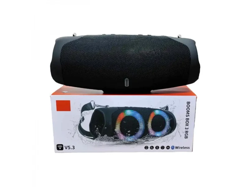 Αδιάβροχο Ισχυρό Ασύρματο Bluetooth Ηχείο Booms Box 3 Mini RGB - Μαύρος