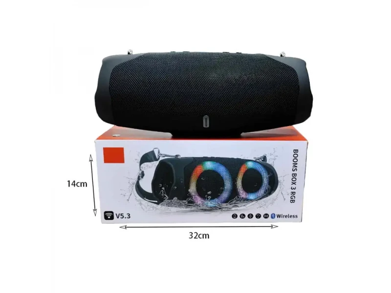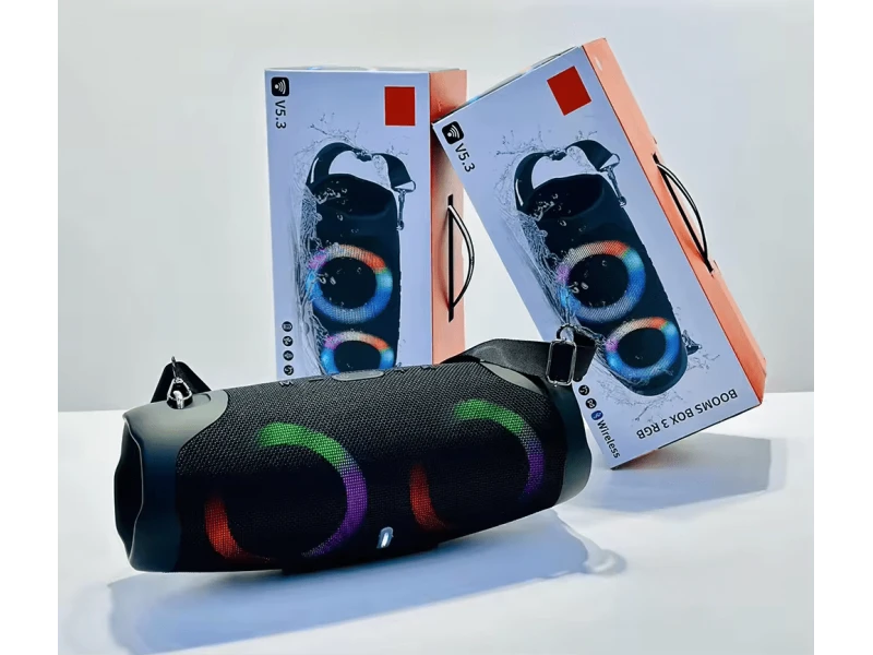 • Αδιάβροχο Ισχυρό Ασύρματο Bluetooth Ηχείο Booms Box 3 RGB - Μαύρος