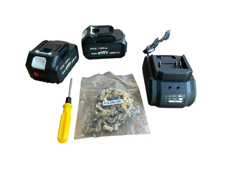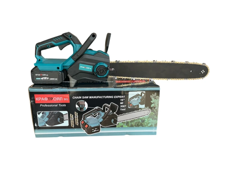 Το ασύρματο αλυσοπρίονο με φίλτρο λαδιού είναι το ιδανικό εργαλείο για γρήγορη και αποτελεσματική κοπή ξύλου, κλαδιών και κορμών. Με ισχυρές μπαταρίες, μακριά ράβδο οδήγησης 40 εκατοστών και αυτόματη λίπανση αλυσίδας, εξασφαλίζει υψηλή απόδοση και μεγάλη διάρκεια ζωής. Κύρια πλεονεκτήματα: ✅ Μήκος ράβδου: 40 cm - κατάλληλο για μεσαία και μεγάλα δέντρα. ✅ Αυτόματη λίπανση αλυσίδας - για ομαλή και αποτελεσματική λειτουργία. ✅Μοτέρ χωρίς ψήκτρες - μεγαλύτερη διάρκεια ζωής και χαμηλότερη κατανάλωση ενέργειας. ✅ Εργονομικός σχεδιασμός - άνετη λαβή για σταθερό κράτημα και άνεση κατά την εργασία. ✅ Χωρίς επιβλαβείς εκπομπές και χαμηλό επίπεδο θορύβου - μια οικολογική και αθόρυβη εναλλακτική λύση στα αλυσοπρίονα βενζίνης. Το σετ περιλαμβάνει: 2 τεμ. αλυσίδες – για μακροχρόνια και αποτελεσματική λειτουργία. 2 τεμ. Μπαταρίες 36V 10Ah – μεγάλη διάρκεια ζωής και αξιόπιστη λειτουργία χωρίς διακοπή. Φορτιστής – γρήγορη φόρτιση για μέγιστη άνεση. Κατσαβίδι – για εύκολη ρύθμιση και συντήρηση. Ανθεκτικότητα και δύναμη για κάθε έργο! Είτε κλαδεύετε κλαδιά στον κήπο είτε κόβετε καυσόξυλα, αυτό το σετ θα εξασφαλίσει εύκολη και ασφαλή εργασία. Έτοιμο για εργασία – Όλα όσα χρειάζεστε σε ένα κιτ!
