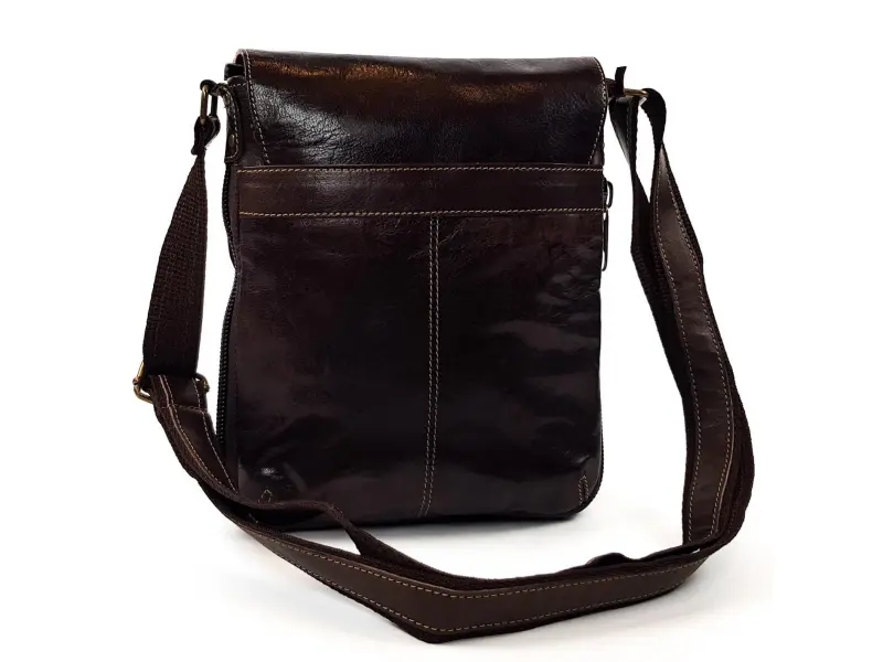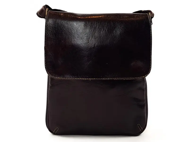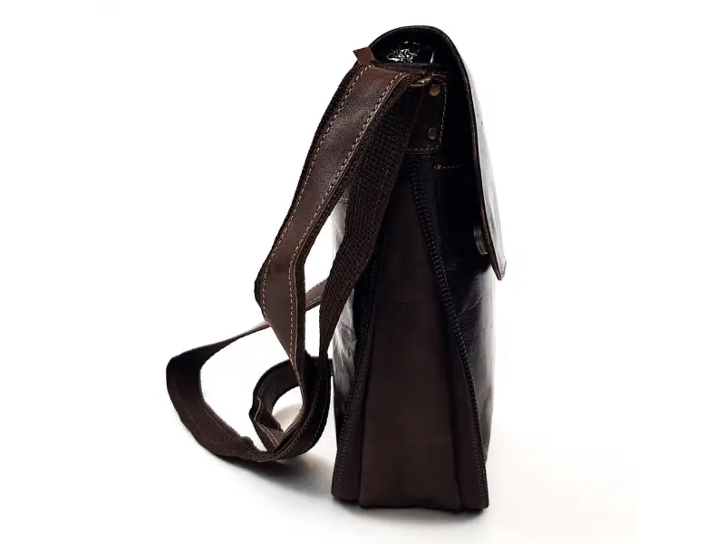 Υψηλής ποιότητας ανδρική τσάντα από γνήσιο δέρμα σε σκούρο καφέ χρώμα, λεπτή με καπάκι και φερμουάρ σε όλη την τσάντα που ανοίγει και αυξάνει τον όγκο της. Ανδρική δερμάτινη τσάντα με καπάκι και ρυθμιζόμενη μακριά λαβή.