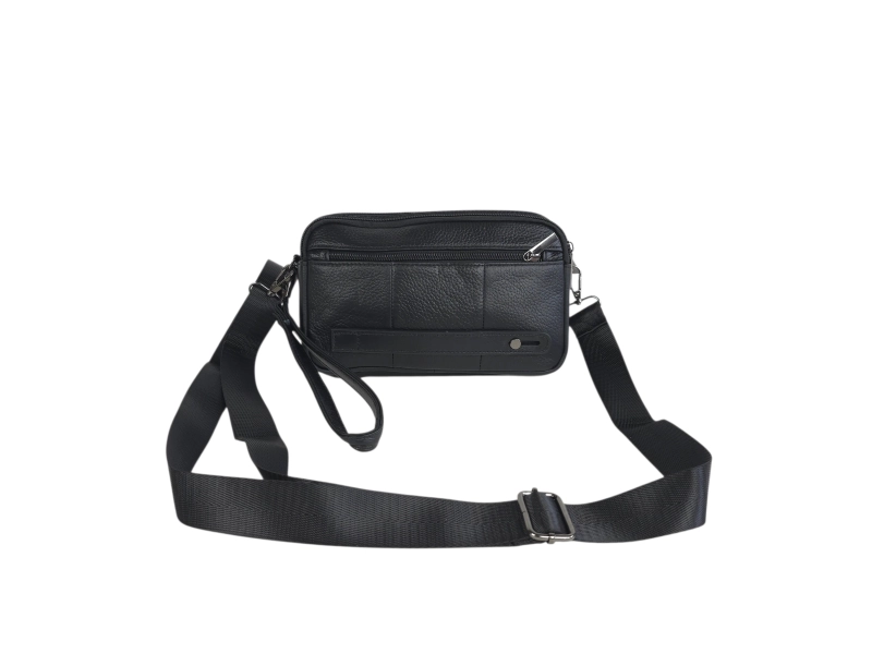 Ανδρική δερμάτινη τσάντα clutch - Δύο κύριες θήκες με φερμουάρ. - Μικρή εσωτερική τσέπη με φερμουάρ. - Μικρή εσωτερική τσέπη χωρίς φερμουάρ. Μπροστινή τσέπη με φερμουάρ - Πίσω τσέπη με φερμουάρ. - Λαβή για μεταφορά στο χέρι. - Δυνατότητα ρύθμισης μακρύ ιμάντα ώμου.