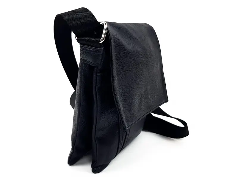 Ανδρική τσάντα από οικολογικό δέρμα 13. Νέα ανδρική τσάντα από τεχνητό δέρμα. Οικονομική μαύρη ανδρική τσάντα από οικολογικό δέρμα, κλειστή με καπάκι, μεγάλη θήκη με δύο χωρίσματα - ePazar.bg
