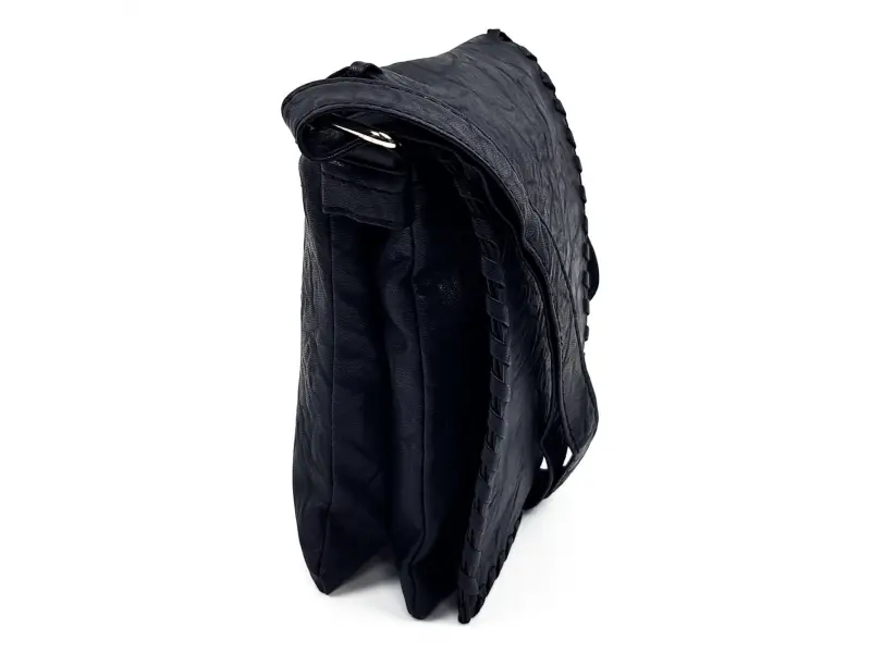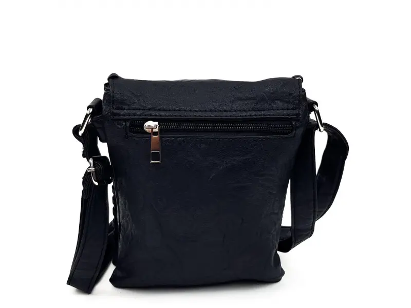 Ανδρική τσάντα από οικολογικό δέρμα - τσαλακωμένο. Νέο μοντέλο ανδρικής τσάντας από τεχνητό δέρμα. Ανδρική τσάντα σε μαύρο χρώμα με καπάκι, τσαλακωμένο οικολογικό δέρμα. Ανδρική τσάντα με δύο θήκες - ePazar.bg