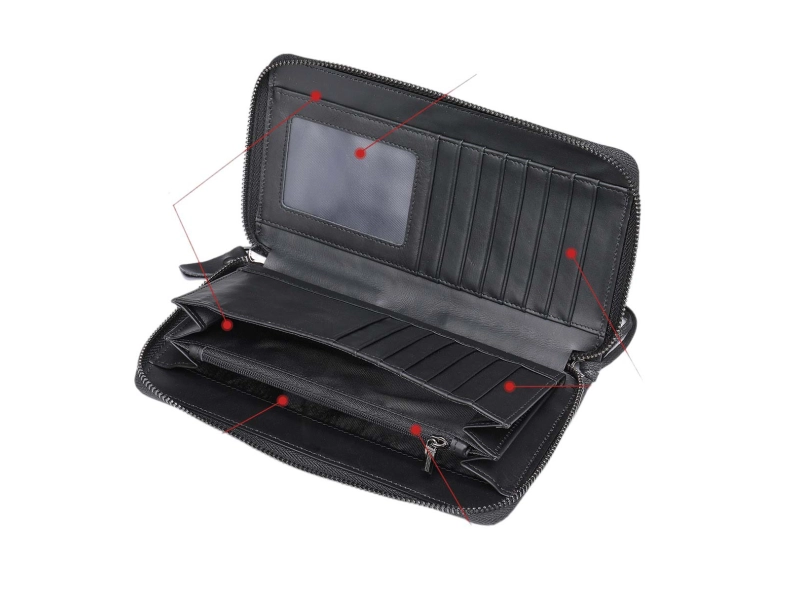 Το πορτοφόλι διαθέτει δύο θήκες με φερμουάρ.