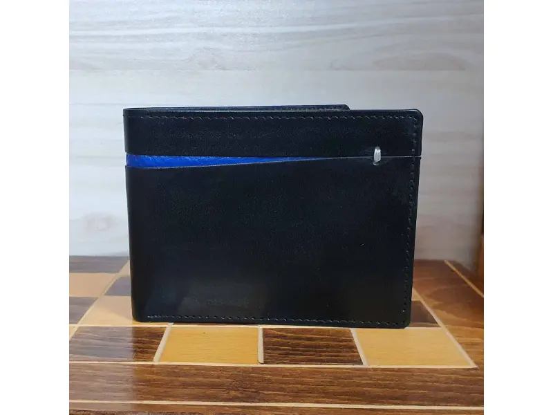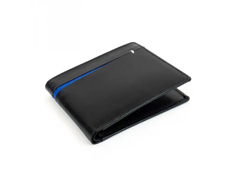 Ανδρικό πορτοφόλι - Μπλε, Υψηλής ποιότητας ανδρικό πορτοφόλι από ανθεκτικό γνήσιο δέρμα σε μαύρο χρώμα με χώρο για χαρτονομίσματα, προσωπικά έγγραφα, χρεωστικές κάρτες.