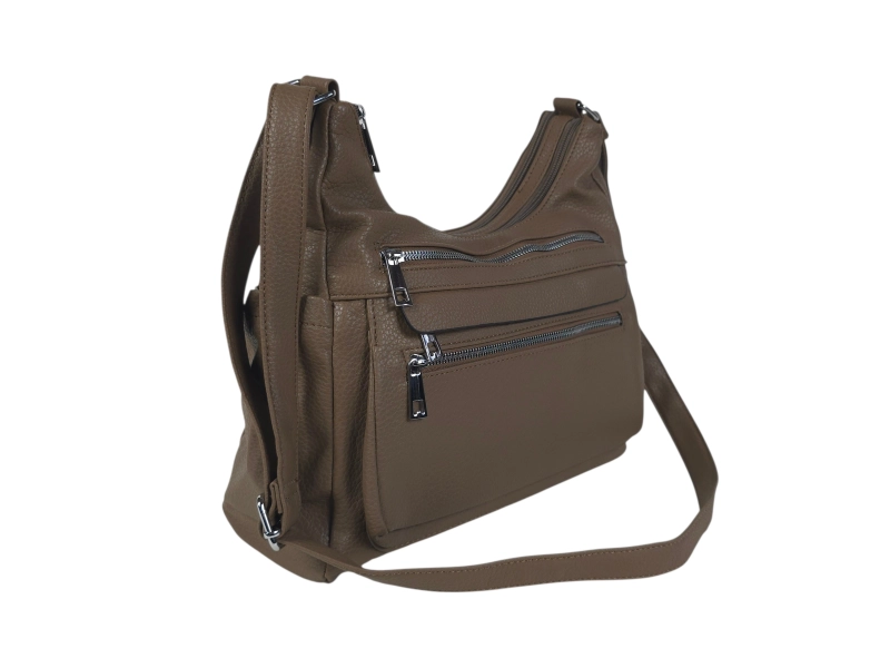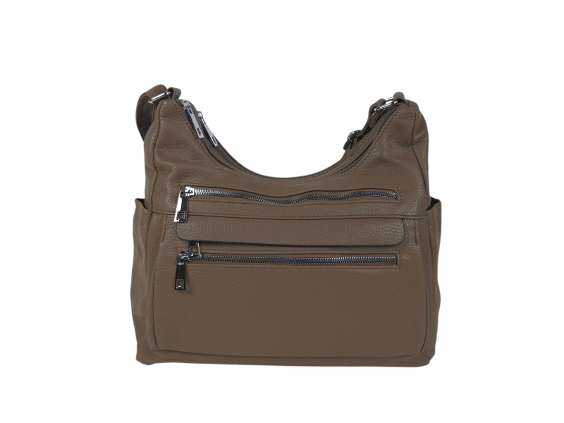 Καθημερινή τσάντα χειρός - Τσάντα χειρός από οικολογικό δέρμα. - Δύο κύριες θήκες με φερμουάρ - Μικρή εσωτερική τσέπη με φερμουάρ. - Τρεις μπροστινές τσέπες με φερμουάρ. - Πίσω τσέπη με φερμουάρ. Δύο πλαϊνές τσέπες. - Μακριά ρυθμιζόμενη λαβή.