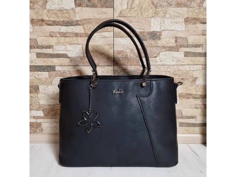 Τσάντα χειρός κατασκευασμένη στη Βουλγαρία - Μαύρη τσάντα χειρός. - Τσάντα από οικολογικό δέρμα. - Μία κύρια θήκη με κλείσιμο με φερμουάρ. Εσωτερική θήκη με φερμουάρ. - Χώρος για τηλέφωνο και κλειδιά. Εσωτερική τσέπη με φερμουάρ. - Άνετες λαβές μεταφοράς. - Μακριές ρυθμιζόμενες λαβές.