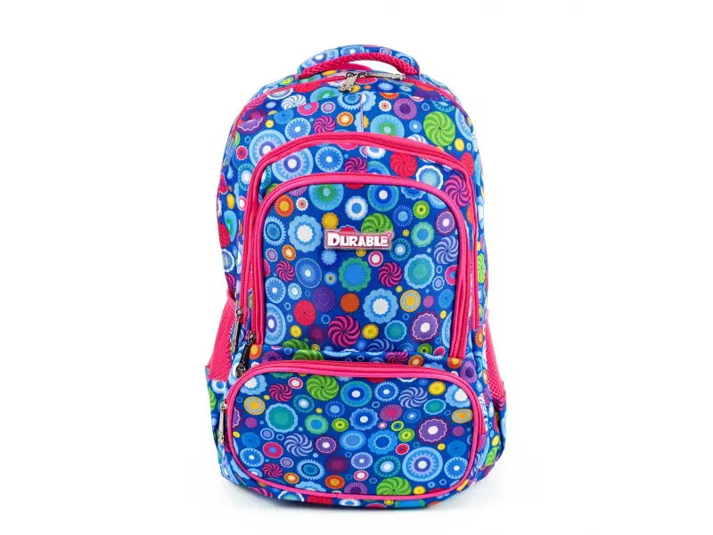 Σχολικό σακίδιο πλάτης κατάλληλο για κορίτσια με άνετη πλάτη και ρυθμιζόμενα λουράκια. Σακίδιο πλάτης με δύο μεγάλες θήκες και δύο μπροστινές τσέπες, πλαϊνά δίχτυα για μπουκάλια, στιβαρή λαβή μεταφοράς και λαβή κρέμασης.