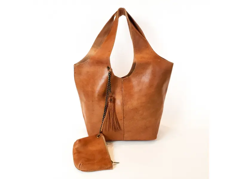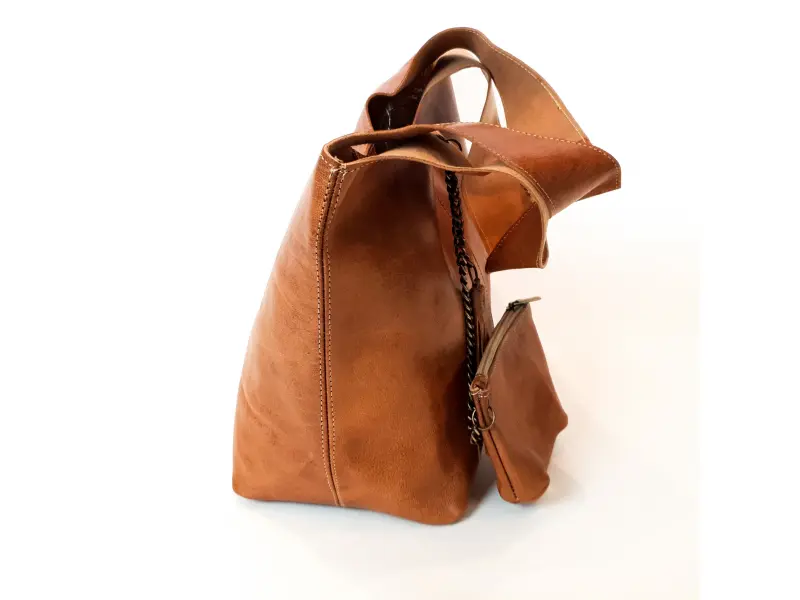 Μεγάλη γυναικεία τσάντα χειρός από γνήσιο δέρμα, χειροποίητη. Μαροκινή τσάντα - μια τσάντα με μαγνητικό κλείσιμο, με στιβαρές λαβές και ένα επιπλέον τσαντάκι με φερμουάρ.
