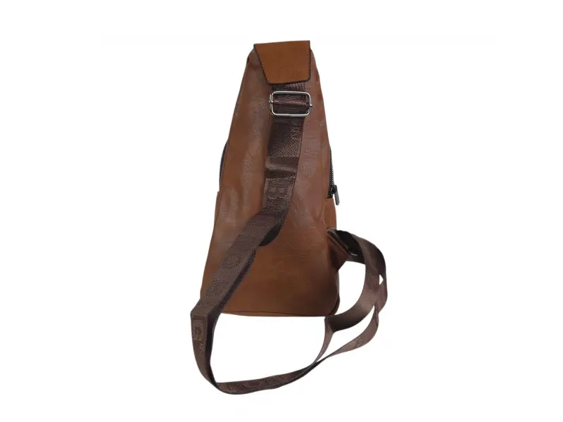 Τσάντα χιαστί με μοντέρνο σχεδιασμό - Ανδρική τσάντα από οικολογικό δέρμα. - Μια ανδρική τσάντα που μπορεί να φορεθεί στο στήθος, τον ώμο ή την πλάτη σαν σακίδιο πλάτης. - Μία κύρια θήκη με φερμουάρ. - Εσωτερική τσέπη χωρίς φερμουάρ. Ρυθμιζόμενος ιμάντας ώμου.