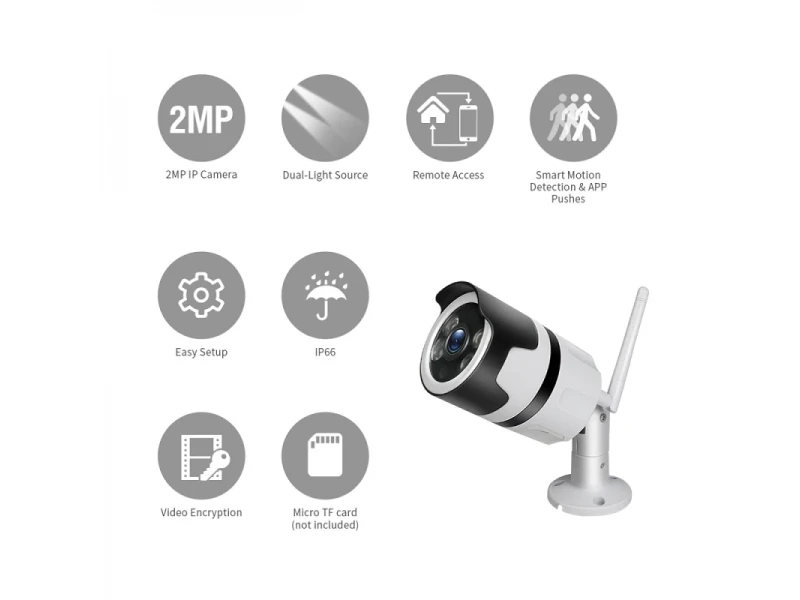 Η κάμερα Wifi μπορεί να ρυθμιστεί και να εγκατασταθεί μέσα σε λίγα λεπτά, χωρίς την ανάγκη πρόσθετων συσκευών ή καλωδίων. Η κάμερα στέλνει ειδοποιήσεις κίνησης ή ήχου απευθείας στο smartphone μέσω της εφαρμογής με την οποία λειτουργεί. Αυτόματη νυχτερινή λειτουργία.