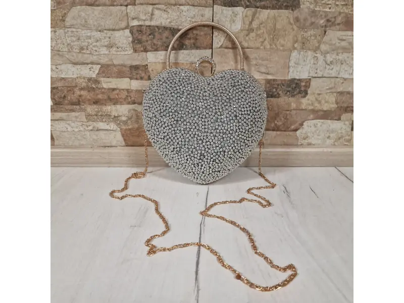 Ασημένια τσάντα με μαργαριτάρια - καρδιά | Γυναικείες τσάντες (ePazar.bg)