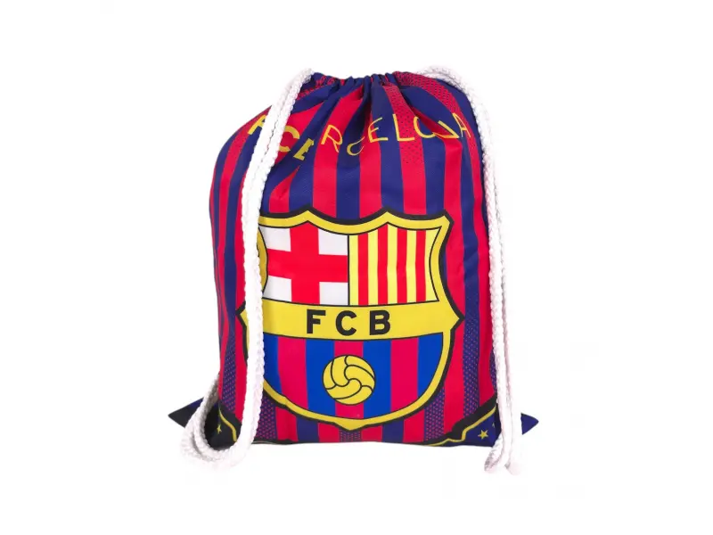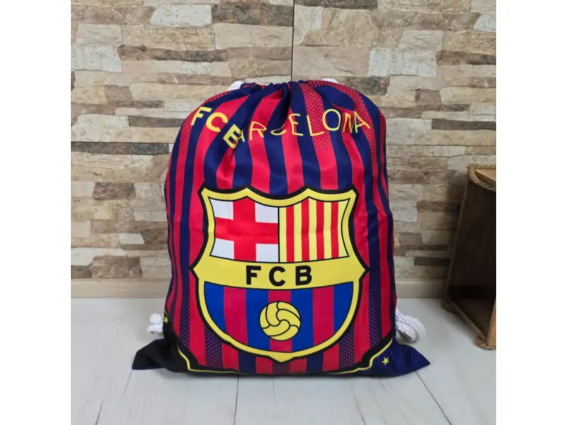 Βολική τσάντα για αθλητικά παπούτσια και αθλήματα - Ένα διαμέρισμα που στερεώνεται με κορδόνια. - Μια τσάντα για τους οπαδούς της Μπαρτσελόνα.