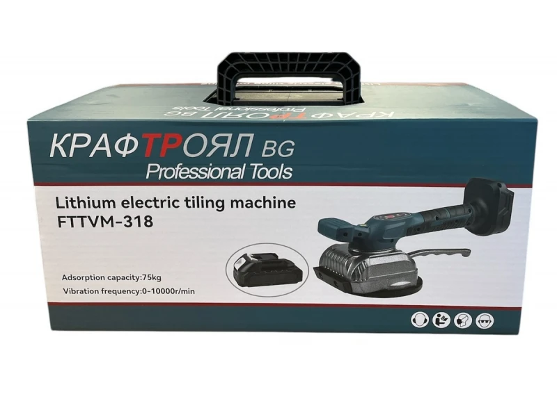 Το ασύρματο ανυψωτικό πλακιδίων KraftRoyal 36V 8AH με ενσωματωμένη ισοπέδωση είναι ένα καινοτόμο εργαλείο σχεδιασμένο για να διευκολύνει την εργασία με βαριά υλικά όπως κεραμικά πλακίδια, πλακίδια πορσελάνης, γρανίτης, μάρμαρο, γυαλί κ.λπ. Με μέγιστη ικανότητα ανύψωσης 75 kg, προσφέρει υψηλή σταθερότητα και ασφάλεια κατά τη μεταφορά και τοποθέτηση μεγάλων πλακών χωρίς να απαιτείται χειροκίνητη προσπάθεια. Το προϊόν είναι εξοπλισμένο με δύο μπαταρίες 36V 8AH, εξασφαλίζοντας μακροχρόνια λειτουργία και απόδοση. Η ενσωματωμένη ισοπέδωση εξασφαλίζει ακριβή και εύκολη ευθυγράμμιση του υλικού, καθιστώντας τη διαδικασία εγκατάστασης γρήγορη και ακριβή. Η βεντούζα αντικαθιστά τις παραδοσιακές μεθόδους χειροκίνητου χειρισμού, παρέχοντας μεγαλύτερη άνεση και ασφάλεια στον χειριστή. Αυτό το εργαλείο είναι ιδανικό για επαγγελματίες κατασκευών και ανακαινίσεων, καθώς και για οικιακούς τεχνίτες που αναζητούν έναν αποτελεσματικό και εύκολο τρόπο εργασίας με βαριά και ευαίσθητα πλακάκια. ΧΑΡΑΚΤΗΡΙΣΤΙΚΑ: Οι δονήσεις είναι καθαρές και δυνατές. Πλατιά βεντούζα - 13 cm. Με 6 ρυθμιζόμενα επίπεδα λειτουργίας Χωρητικότητα βεντούζας – 75 kg. Τάση μπαταρίας: 36V Χρόνος φόρτισης: 2 ώρες Μέγιστος χρόνος εργασίας: 9 ώρες Ισχυρές μπαταρίες 8.0Ah που διαρκούν πολύ καιρό υπό φορτίο Οι δονητές είναι πολύ εύχρηστοι και άνετοι, ακόμη και με το ένα χέρι. Βάρος: 2 κιλά. ΤΟ ΚΙΤ ΠΕΡΙΛΑΜΒΑΝΕΙ: Βεντούζα – 1 τεμάχιο Μπαταρία 36V 8Ah – 2 τεμάχια Φορτιστής – 1 τεμάχιο Πλαστική θήκη για βολική αποθήκευση και μεταφορά.