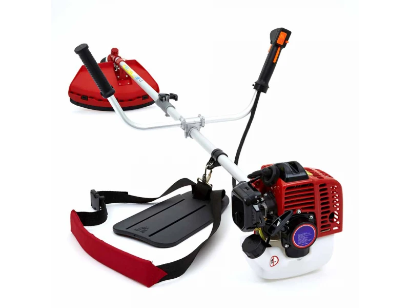 Επαγγελματική μηχανοκίνητη κουρευτική μηχανή KraftRoyal με οικολογικό και ισχυρό μοτέρ. Εξοπλισμένο με λαβή πολλαπλών λειτουργιών με cruise control για διατήρηση σταθερού αερίου και εργονομική καθοδήγηση της συσκευής. Για γρήγορο, βολικό και οικονομικό κούρεμα μεγάλων χώρων πρασίνου και σκληρών και μπερδεμένων ζιζανίων και θάμνων. Κατάλληλο για συχνή χρήση με βαριά φορτία. Εξοπλισμένο με κατάλληλο εργαλείο κοπής, μπορεί επίσης να χρησιμοποιηθεί για την κοπή θάμνων και μίσχων με διάμετρο έως 5-7 cm. Μάρκα: KraftRoyal Προέλευση: Γερμανία Εγγύηση: 24 Μήνες. Στο σετ: - Κεφαλή καλωδίου - Μεταλλικό μαχαίρι με τρία δόντια - Κυκλικός δίσκος - Ζώνη ώμου - Επαγγελματική σέλα πλάτης για πιο άνετη και μακροχρόνια εργασία - Γάντια - Προστατευτικά γυαλιά - Εργαλεία υποστήριξης - Σωλήνας για μίγμα καυσίμου. Τεχνικά χαρακτηριστικά: Κινητήρας: βενζίνη, αερόψυκτος, μονοκύλινδρος, δίχρονος. Κυβισμός κινητήρα: 68 κ.εκ Ισχύς: 4000W, 3,8HP Περιστροφές: 8500 στροφές/λεπτό. Λάδι λίπανσης/βενζίνη:/1 l βενζίνη a95h: 30 ml λάδι δίχρονου Όγκος ρεζερβουάρ βενζίνης: 1,2 l. Επίπεδο κραδασμών αριστερά/δεξιά 2,8/2,4 m/sec. Επίπεδο θορύβου: 105 db .