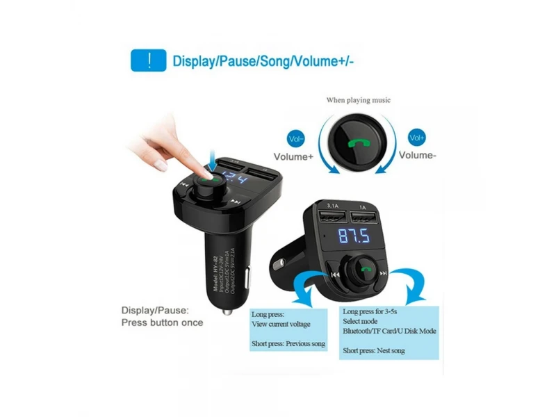Πομπός αυτοκινήτου X8 με λειτουργία BLUETOOTH: εμβέλεια έως 5 μέτρα Λειτουργία HANDSFREE: κλήσεις hands-free