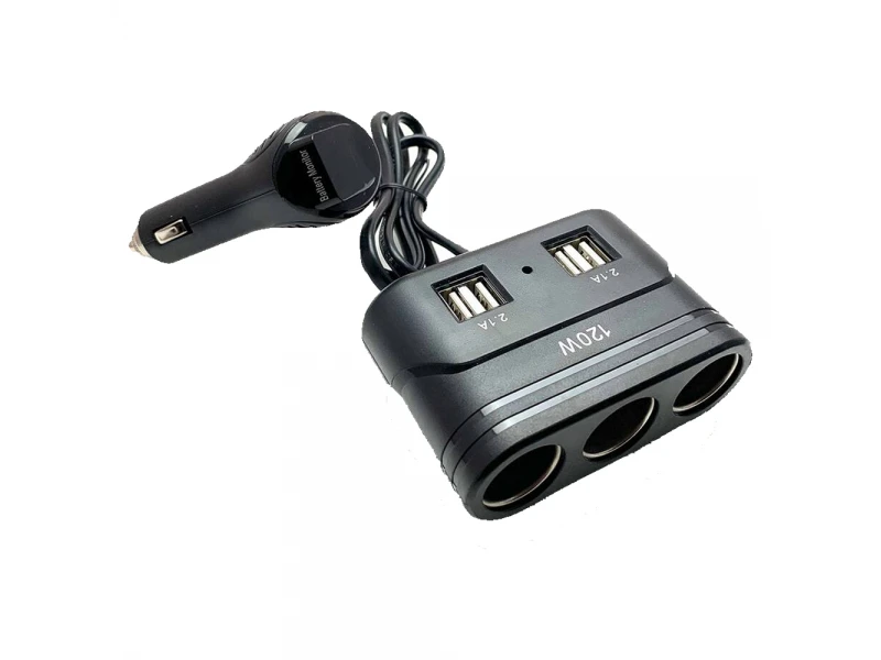 Τριπλή υποδοχή αναπτήρα + 4 εξόδους USB για φόρτιση Tablet, Πλοήγηση, Τηλέφωνα, Παιχνίδια κ.λπ. Ένα όλο και πιο απαραίτητο, βολικό και περιζήτητο προϊόν με κομψό σχεδιασμό και ένδειξη ισχύος . Τα κύρια χαρακτηριστικά: ⇒ Τάση εισόδου: 12V/24V ⇒ Έξοδος: 3 τεμάχια αναπτήρα + 4 τεμάχια USB - 2 x 1000 mA και 2 x 2100 mA ⇒ Μήκος καλωδίου: ~ 75 cm. ⇒ Συνολικές διαστάσεις: 9,7 x 6,5 x 3,5 cm. ⇒ Βάρος: 100 γρ. ⇒ Βολτόμετρο στάθμης μπαταρίας ⇒ Ενσωματωμένη ασφάλεια στην υποδοχή του αναπτήρα