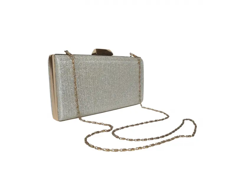Επίσημη χρυσή τσάντα - Επίσημη τσάντα χειρός με μία θήκη. - Άνοιγμα και κλείσιμο με μηχανισμό. - Χρυσό περίγραμμα. - Λαβή τύπου μακριάς αλυσίδας.