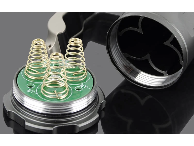 Οι μπαταρίες τοποθετούνται στο δοχείο που περιλαμβάνεται στο κιτ και τοποθετούνται μέσα βιδώνοντας το πίσω κάλυμμα. Ο προβολέας χρησιμοποιεί την ισχυρή δίοδο Cree XM-L T6. Διαθέτει τρεις τρόπους λειτουργίας: ισχυρό, οικονομικό και σήμα blitz που αναβοσβήνει. Τακτοποιούνται από το κουμπί στη λαβή. Ανθεκτικό στην υγρασία. Σχεδιασμός κατά της περιστροφής. Κατασκευασμένο από αερομέταλλο, κράμα αλουμινίου.