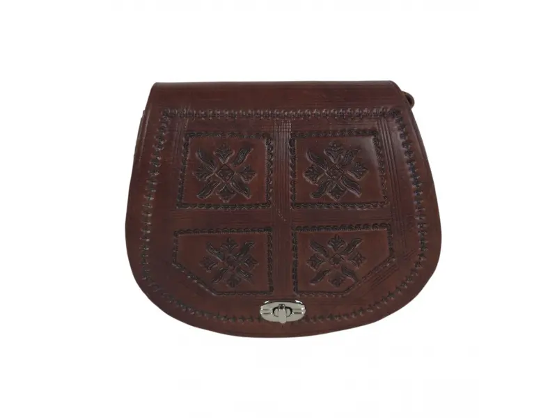 Καφέ τσάντα χειροποίητη από γνήσιο δέρμα. Μαροκινή τσάντα με μοναδικό σχεδιασμό. Κομψή τσάντα με άνετη ρυθμιζόμενη λαβή. - ePazar.bg