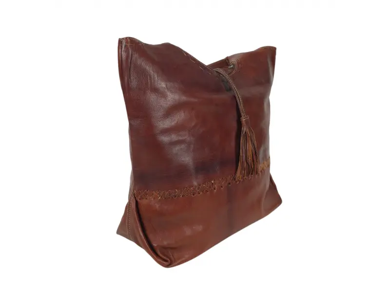 Καφέ τσάντα χειροποίητη από γνήσιο δέρμα. Μαροκινή τσάντα με μοναδικό σχεδιασμό. Κομψή τσάντα με άνετες λαβές. - ePazar.bg