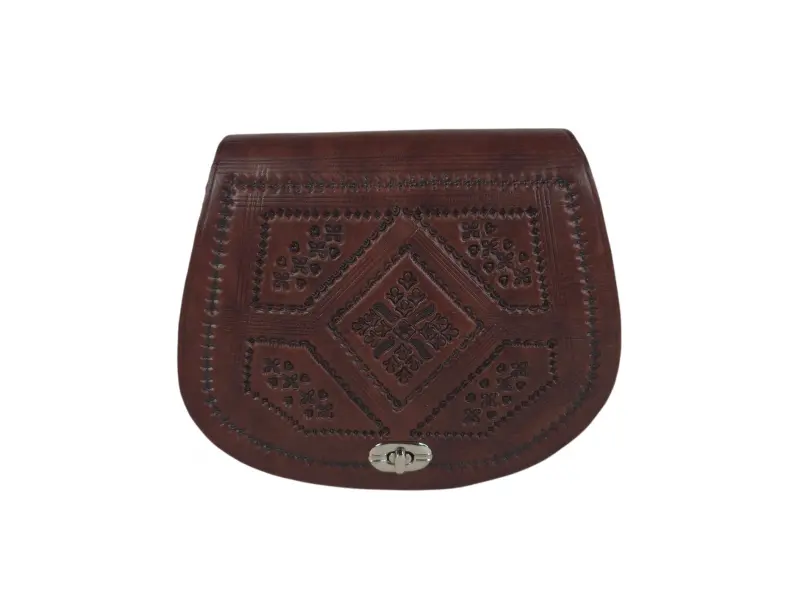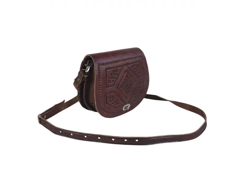 Καφέ τσάντα χειροποίητη από γνήσιο δέρμα. Μαροκινή τσάντα με μοναδικό σχεδιασμό. Κομψή τσάντα με άνετη ρυθμιζόμενη λαβή. - ePazar.bg