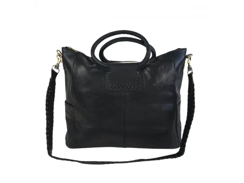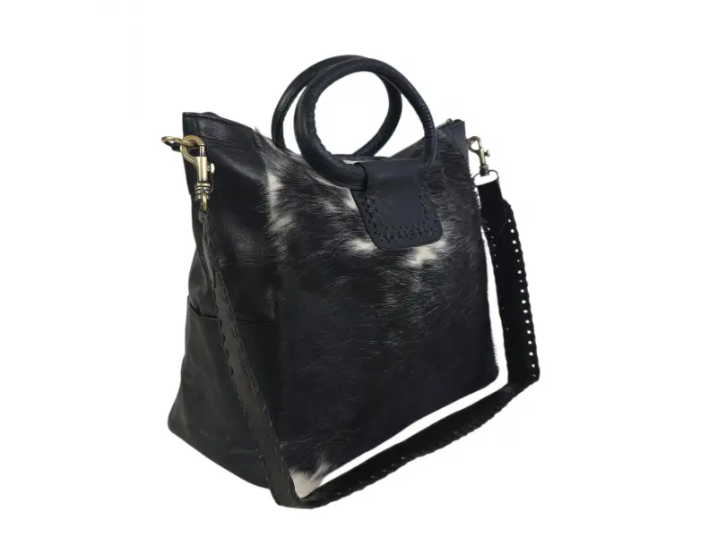Μαύρη τσάντα χειρός από γνήσιο δέρμα σε συνδυασμό με φυσική τρίχα, χειροποίητη. Μαροκινή τσάντα χειρός με μοναδικό σχεδιασμό. Κομψή τσάντα χειρός με άνετες λαβές. - ePazar.bg