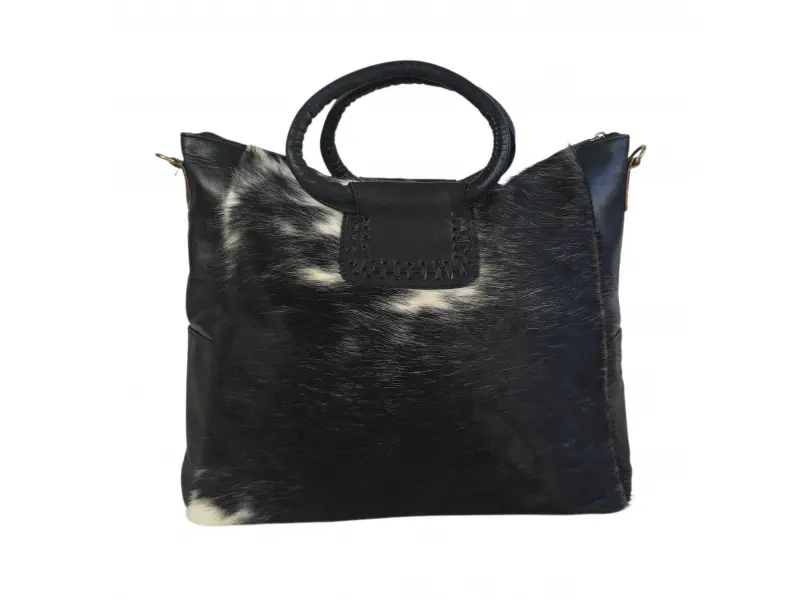 - Τσάντα χειρός από γνήσιο δέρμα σε συνδυασμό με φυσική τρίχα.