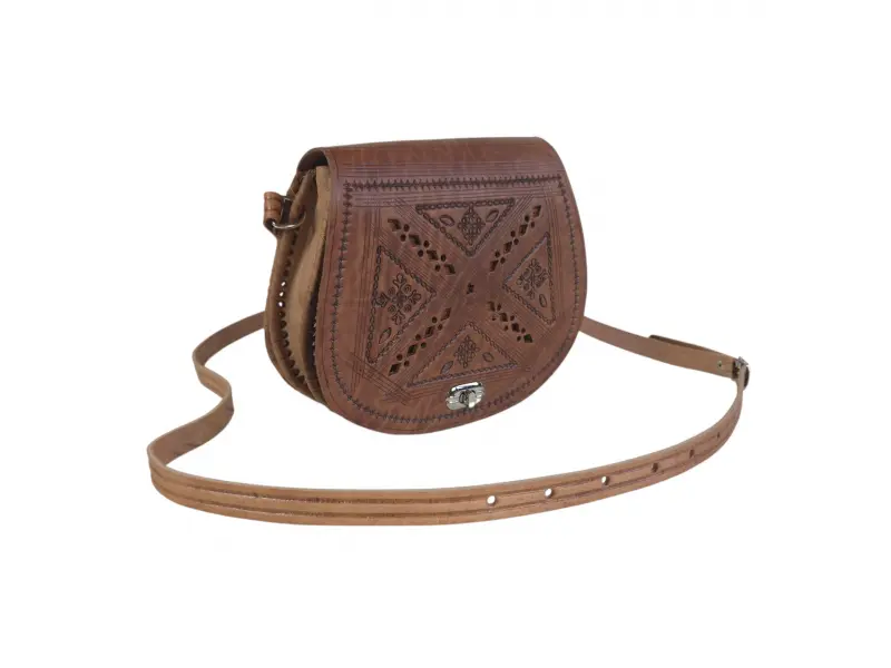 Μαροκινή τσάντα χειρός - Τσάντα χειρός από γνήσιο δέρμα. - Ένα κύριο διαμέρισμα χωρισμένο σε δύο. Μπροστινή τσέπη με φερμουάρ. - Μακριά ρυθμιζόμενη λαβή.