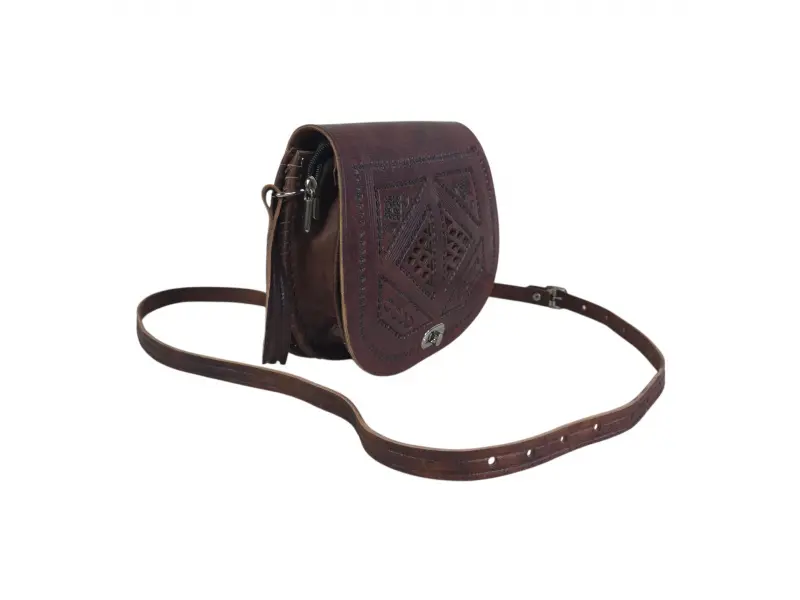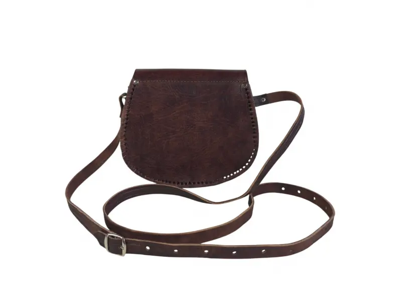 Καφέ τσάντα χειροποίητη από γνήσιο δέρμα. Μαροκινή τσάντα με μοναδικό σχεδιασμό. Κομψή τσάντα με άνετη ρυθμιζόμενη λαβή. - ePazar.bg