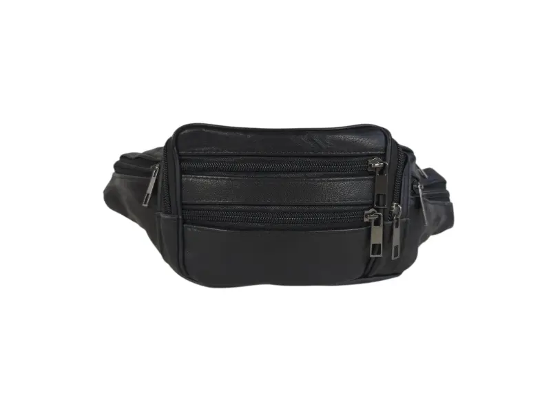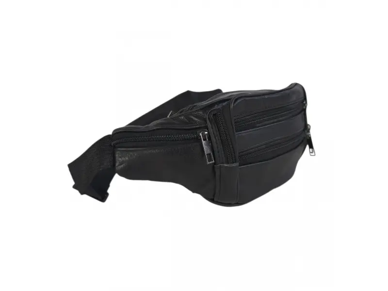 Μαύρη τσάντα χιαστί - Τσάντα από γνήσιο δέρμα. - Μία κύρια θήκη με φερμουάρ. - Τρεις μπροστινές τσέπες με φερμουάρ. - Δύο μικρές πλαϊνές τσέπες με φερμουάρ. - Πίσω τσέπη με φερμουάρ. - Ρυθμιζόμενη ζώνη.