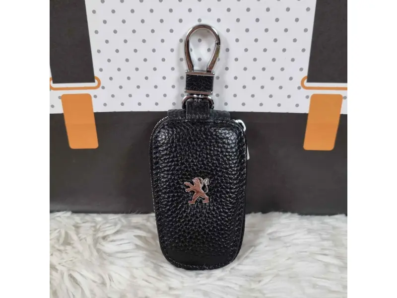 Μπρελόκ υψηλής ποιότητας από γνήσιο δέρμα σε μαύρο χρώμα. Ένα ιδανικό δώρο για τους λάτρεις και τους κατόχους αυτοκινήτων Peugeot.