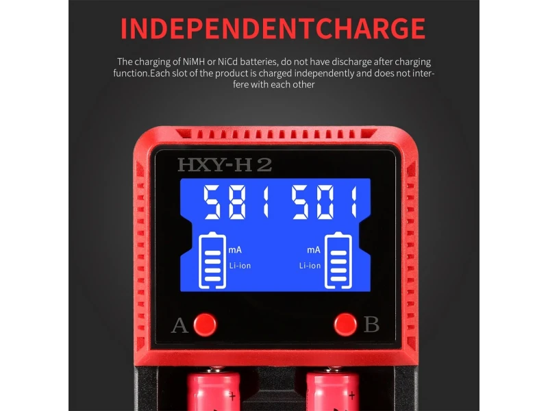 Διπλός φορτιστής για μπαταρίες Li-On Hexinyu H2 με οθόνη LCD