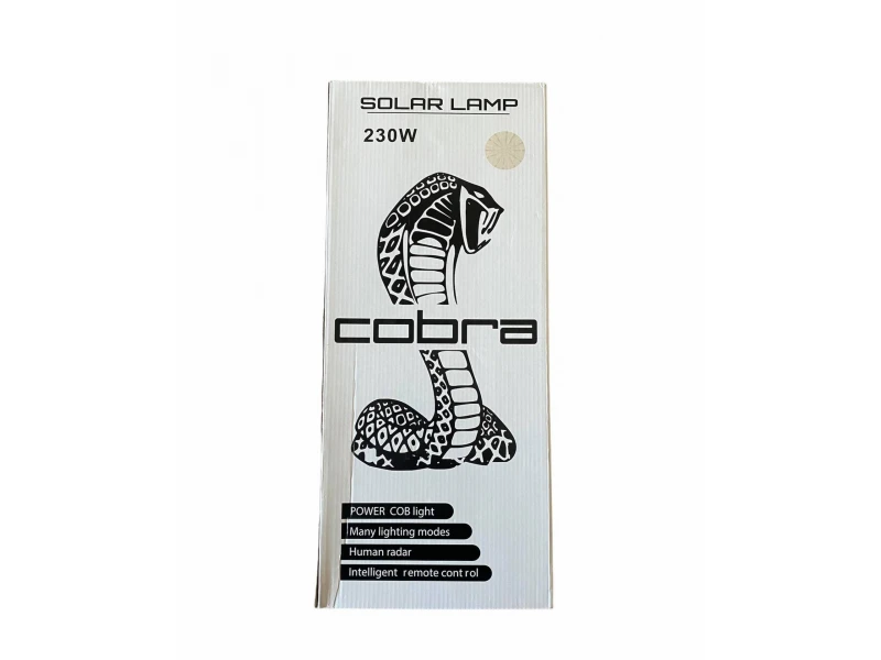 Φωτιστικό δρόμου Cobra νέας γενιάς! Το σύστημα είναι εντελώς αυτόνομο , η μπαταρία φορτίζεται κατά τη διάρκεια της φωτεινής ώρας της ημέρας και μόλις βραδιάσει τα φώτα ανάβουν αυτόματα, χάρη στους αισθητήρες φωτός στο ηλιακό πάνελ. Το ηλιακό φωτιστικό δρόμου είναι ένα έξυπνο σύστημα φωτισμού εξωτερικού χώρου που ενσωματώνει τα καλύτερα εξαρτήματα εξοικονόμησης ενέργειας - φωτοβολταϊκό πάνελ, φωτιστικό, αισθητήρα, ελεγκτή και μπαταρία λιθίου , όλα σε ένα κουτί. Κατά τη διάρκεια της ημέρας, το ηλιακό πάνελ υψηλής απόδοσης συλλέγει ενέργεια από τον ήλιο και την αποθηκεύει στην προηγμένη μπαταρία λιθίου. Τη νύχτα, το ισχυρό LED θα ανάψει αυτόματα για να παρέχει φως. Δυνατότητα φωτισμού όταν ανιχνεύεται κίνηση, το COB θα αυξήσει τη φωτεινότητα για να παρέχει άφθονο πρόσθετο φωτισμό για όλους στην περιοχή.
