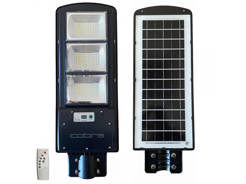Φωτιστικό δρόμου Cobra νέας γενιάς! Το σύστημα είναι εντελώς αυτόνομο , η μπαταρία φορτίζεται κατά τη διάρκεια της φωτεινής ώρας της ημέρας και μόλις βραδιάσει τα φώτα ανάβουν αυτόματα, χάρη στους αισθητήρες φωτός στο ηλιακό πάνελ. Το ηλιακό φωτιστικό δρόμου είναι ένα έξυπνο σύστημα φωτισμού εξωτερικού χώρου που ενσωματώνει τα καλύτερα εξαρτήματα εξοικονόμησης ενέργειας - φωτοβολταϊκό πάνελ, φωτιστικό, αισθητήρα, ελεγκτή και μπαταρία λιθίου , όλα σε ένα κουτί. Κατά τη διάρκεια της ημέρας, το ηλιακό πάνελ υψηλής απόδοσης συλλέγει ενέργεια από τον ήλιο και την αποθηκεύει στην προηγμένη μπαταρία λιθίου. Τη νύχτα, το ισχυρό LED θα ανάψει αυτόματα για να παρέχει φως. Δυνατότητα φωτισμού όταν ανιχνεύεται κίνηση, το COB θα αυξήσει τη φωτεινότητα για να παρέχει άφθονο πρόσθετο φωτισμό για όλους στην περιοχή.