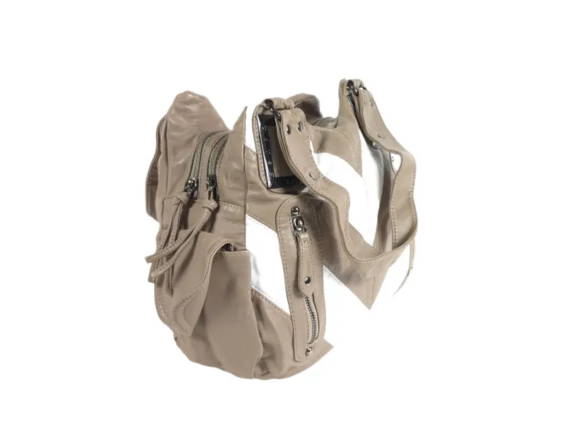 Γυναικεία τσάντα χειρός από βρασμένο ρύζι - Γυναικεία τσάντα χειρός από βρασμένο δέρμα. - Δύο κύριες θήκες με φερμουάρ. - Μικρή εσωτερική τσέπη με φερμουάρ. - Θήκες για τηλέφωνο και έγγραφα. - Δύο μπροστινές τσέπες με φερμουάρ. - Πίσω τσέπη με φερμουάρ. Δύο πλαϊνές τσέπες. - Άνετες λαβές μεταφοράς.