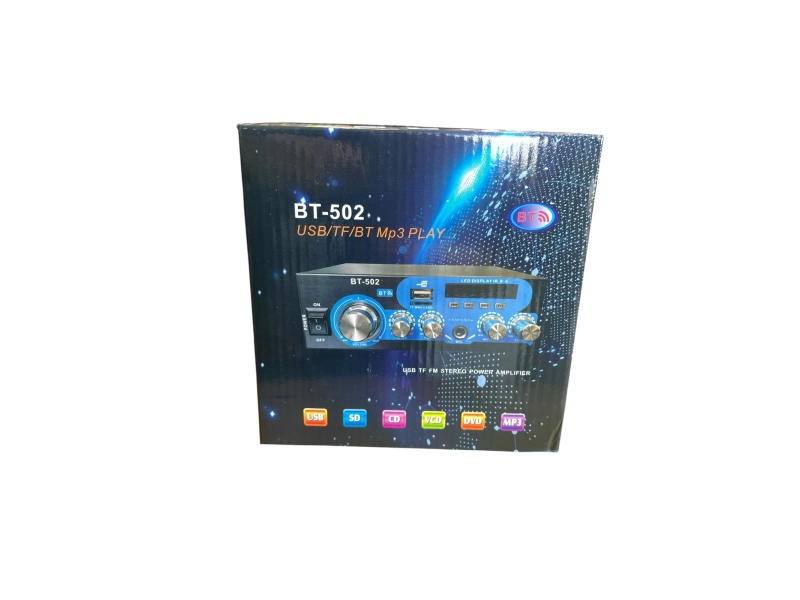 Ανακαλύψτε τον ισχυρό οικιακό ενισχυτή ήχου Bluetooth BT-502 με USB, ραδιόφωνο FM, οθόνη TFT και στερεοφωνικό ήχο 2x30W. Εύκολη σύνδεση και κρυστάλλινος ήχος για κάθε δωμάτιο. Παραγγείλτε τώρα και απολαύστε την αγαπημένη σας μουσική! 🎶