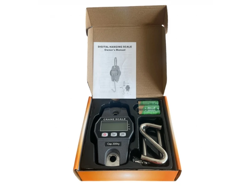 Ζυγαριά τσιγκέλι 300 κιλών μπαταρίας φορητή.Εύκολη τοποθέτηση σε ένα σταθερό σημείο οροφής.Ελαφριά (μόλις 620 gr), για να την έχετε πάντα μαζί σας στο αυτοκίνητο κλπ.Με ακρίβεια μέτρησης και ευανάγνωστη οθόνη.Χρήσιμη για επαγγελματίες, ιδιώτες, οικοδόμους, αγρότες, βιοτέχνες κλπ.* Συμπαγές περίβλημα.* Κουμπί λειτουργίας On/Off.* Μέγιστο όριο βάρους μέτρησης: 300 κιλά.* Διαβάθμιση ζύγισης ανά 0,05 κιλά.* Η διάρκεια ζωής των μπαταριών είναι 150 ώρες.* Εύκολη στην μεταφορά.* Ευκολία χρήσης.* Δεν πιάνει χώρο.* Ανθεκτική κατασκευή.* Εργονομικός σχεδιασμός.Ψηφιακή ηλεκτρονική ζυγαριά τσιγκέλι με ακρίβεια στις μετρήσεις* Για να λειτουργήσει χρειάζεται μόνο 2 μπαταρίες τύπου ΑΑΑ (περιέχονται στην συσκευασία).* Δυνατότητα να παγώσετε την ένδειξη μέτρησης στην οθόνη, δηλαδή μόλις ζυγίσετε ένα αντικείμενο πατάτε το κουμπί Hold και η ένδειξη με το βάρος παγώνει έτσι μπορείτε να έχετε πιο σωστές μετρήσεις.* Μπορεί να αποδώσει σωστά και με ακρίβεια σε κλίμακα θερμοκρασίας από -10 βαθμούς Κελσίου έως 40 βαθμούς Κελσίου.* Εύχρηστη και απλή στην χρήση ιδανική για ζύγισμα εμπορευμάτων μεγάλου βάρους - όγκου.* Αξιόπιστο εργαλείο μέτρησης για ιδιώτες και επαγγελματίες.* Ακρίβεια μέτρησης, εγγύηση σε κάθε μέτρηση, αποτελεσματικότητα με ακρίβεια σε κάθε ζύγισμα.* Γρήγορη εμφάνιση αποτελέσματος με ακρίβεια στην μέτρηση σε ελάχιστα δευτερόλεπτα.* Το αποτέλεσμα της μέτρησης φαίνεται στην οθόνη με έντονα και διακριτικά ψηφία.* Η οθόνη σβήνει μετά από 3 λεπτά όταν δεν χρησιμοποιούμε την ζυγαριά για να μετρήσουμε κάποιο βάρος.* Δεν είναι βαριά ζυγαριά αλλά μπορεί να ζυγίσει ότι βαρύ αντικείμενο φανταστείτε μέχρι 300 κιλά.