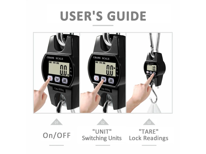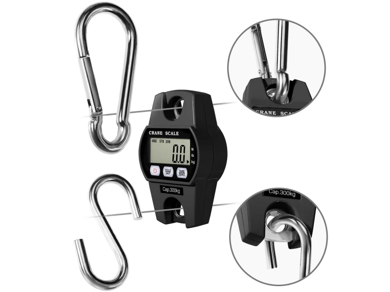 Ζυγαριά τσιγκέλι 300 κιλών μπαταρίας φορητή. Εύκολη τοποθέτηση σε ένα σταθερό σημείο οροφής. Με ακρίβεια μέτρησης και ευανάγνωστη οθόνη.