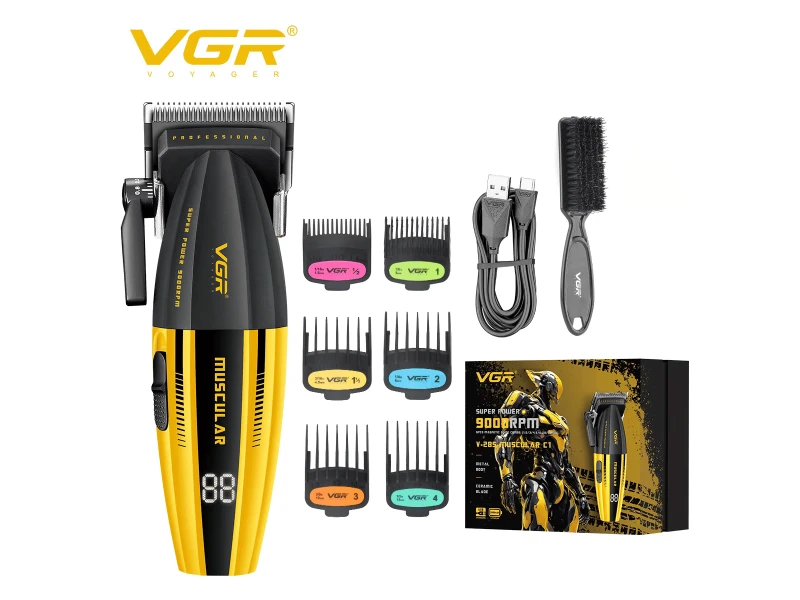 Κουρευτική μηχανή VGR V-285 με ισχυρό κινητήρα, λεπίδα μεταλλουργίας σκόνης, οθόνη LED και 150 λεπτά λειτουργίας. Σε πολυτελή συσκευασία δώρου. Ιδανική για άνδρες και επαγγελματίες.