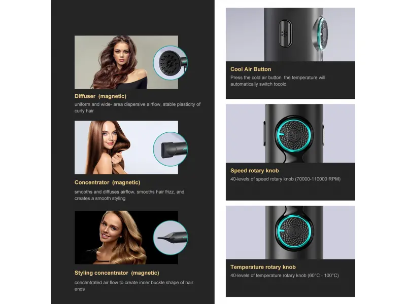- ✅ Εξαιρετικά γρήγορο στέγνωμα με επαγγελματικό κινητήρα BLDC