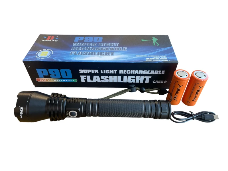 • Επαγγελματικός συμπαγής ισχυρός φακός P90 με δύο μπαταρίες 90.000lm