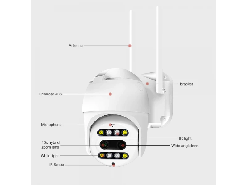 ΟΛΑ ΣΥΜΠΕΡΙΛΑΜΒΑΝΟΝΤΑΙ: Η κάμερα Wifi Dual Lens PTZ είναι αδιάβροχη και κατάλληλη για εξωτερικές συνθήκες, μπορεί να ρυθμιστεί και να εγκατασταθεί σε λίγα λεπτά χωρίς την ανάγκη πρόσθετων συσκευών ή καλωδίων. Η προστασία για αντοχή στο νερό είναι IP66. Διαθέτει δύο φακούς, που επιτρέπει ζουμ υψηλής ποιότητας X 10 φορές. Με αυτό το μοντέλο μπορείτε να διαβάσετε έναν αριθμό αυτοκινήτου από πάνω από 30 μέτρα. Για πρώτη φορά στη Βουλγαρία Ανιχνεύει την κυκλοφορία και στέλνει ειδοποιήσεις: Το πλεονέκτημα των οπτικών καμερών είναι ότι μπορείτε να μεταβείτε στο μέγιστο ζουμ και η ρύθμιση παραμένει έτσι, ακόμα κι αν βγείτε από την εφαρμογή. Με αυτόν τον τρόπο θα καταγράφει σε μεγάλη απόσταση χωρίς να θολώνει την εικόνα. Η κάμερα είναι μηχανοκίνητη και περιστρέφεται προς όλες τις κατευθύνσεις. Η διαχείριση είναι άμεση, μέσω smartphone - εξ αποστάσεως. Απλοποιημένη εγκατάσταση χωρίς την ανάγκη πρόσθετων γνώσεων. Υπάρχουν πλήρεις οδηγίες στα βουλγαρικά. Η κάμερα στέλνει ειδοποιήσεις όταν ανιχνεύεται κίνηση και ήχος , απευθείας στο smartphone , μέσω της εφαρμογής με την οποία λειτουργεί. Αυτόματη νυχτερινή λειτουργία. Εύκολη και έξυπνη διαχείριση: Ασύρματη (WiFi) σύνδεση στο internet Η κάμερα CCTV συνδέεται στο Internet και μεταδίδει βίντεο ασύρματα. Το μόνο που έχετε να κάνετε είναι να το συνδέσετε. Εξαιρετικά εύκολη εγκατάσταση σε 5-10 λεπτά. Υποδοχή αποθήκευσης βίντεο Micro SD έως 128 GB. Αμφίδρομος ήχος (μεταδίδει και λαμβάνει ήχο υψηλής ποιότητας) Ανάλυση FULL HD. Δυνατότητα αποθήκευσης της εγγραφής στο Cloud Λειτουργία νυχτερινής όρασης (νυχτερινή λειτουργία, με υπέρυθρες και LED) Λειτουργία ώθησης συναγερμού Λειτουργία ανίχνευσης κίνησης (στέλνει μια ειδοποίηση όταν ανιχνεύεται κίνηση) Περιστροφή : 355 ° και κατακόρυφη: 70 ° Δύο φακοί για τέλεια ορατότητα σε μεγάλες αποστάσεις